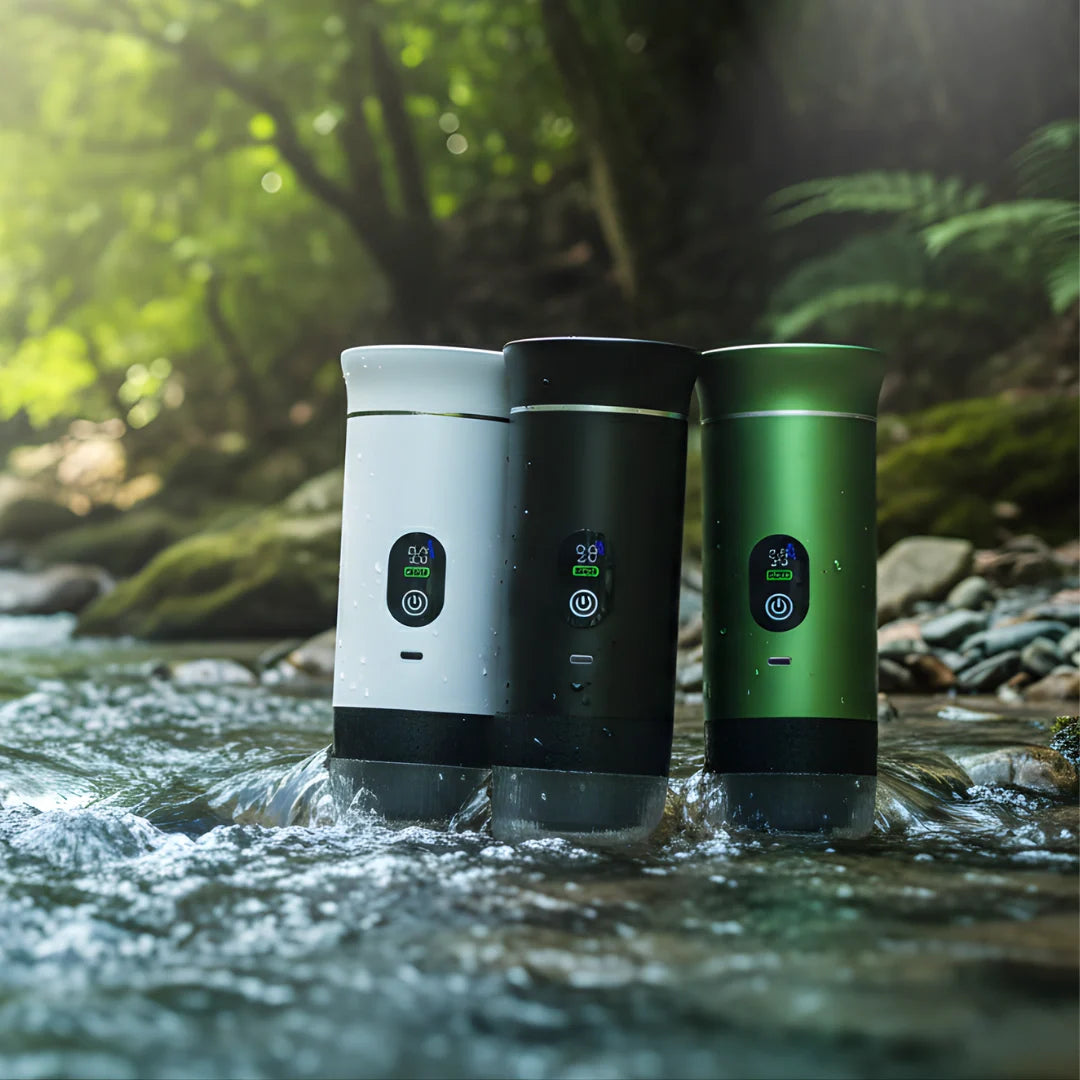 Pesa aproximadamente 600 gramos (similar a una botella de agua) y sus dimensiones compactas caben en cualquier mochila, maleta de mano o portavasos de auto.