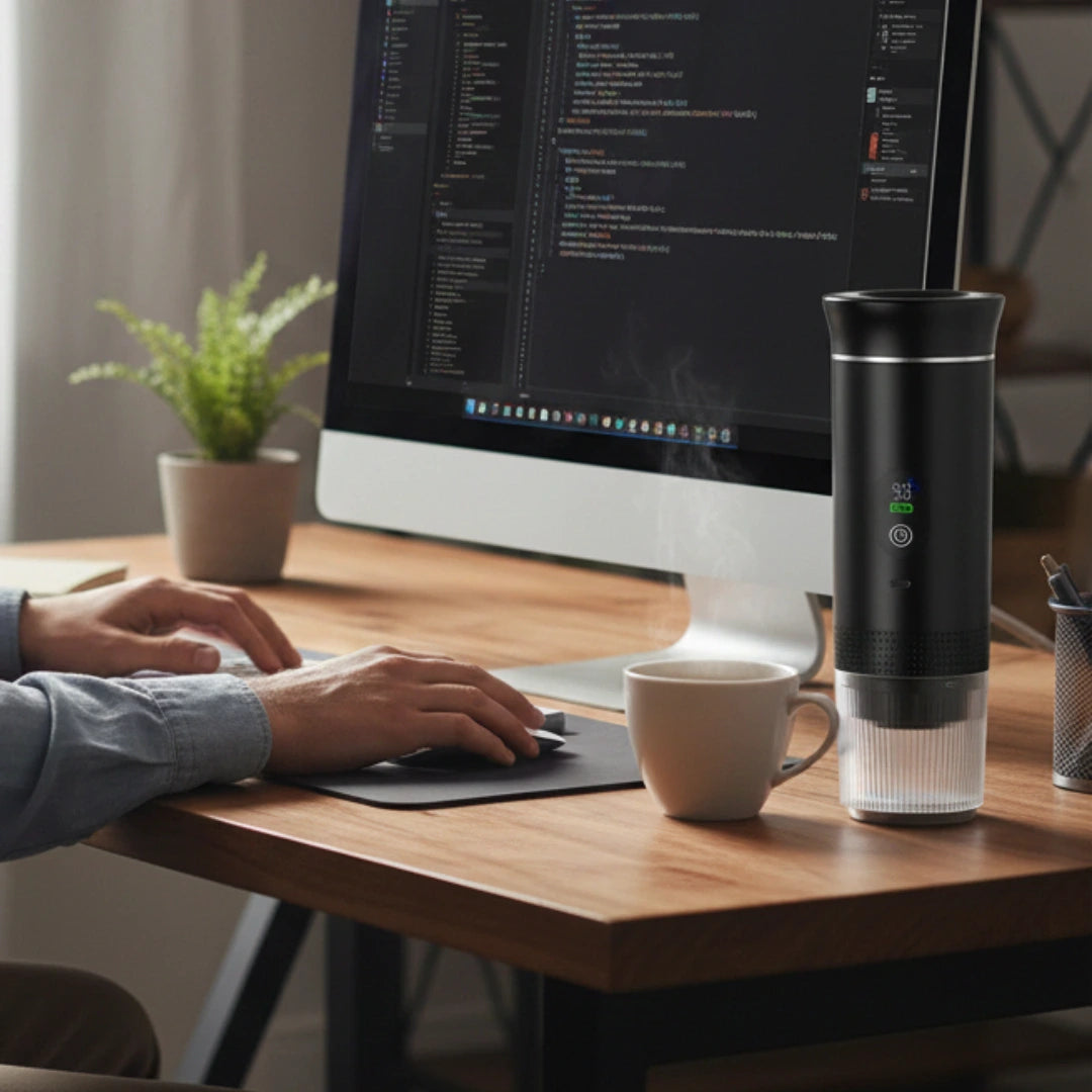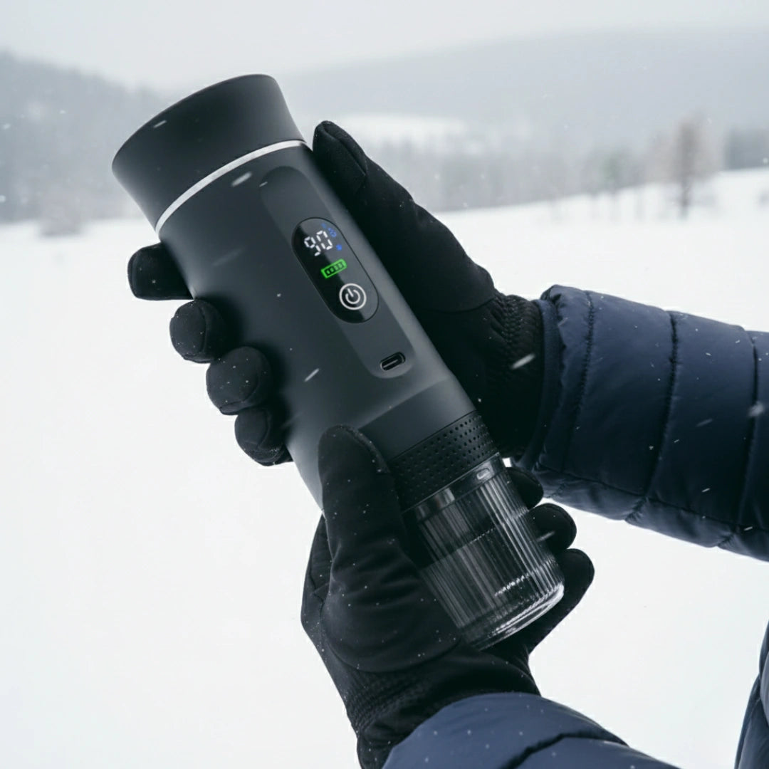 Si utilizas agua previamente caliente, la autonomía se dispara, permitiéndote elaborar más de 200 cafés con una sola carga. Ideal para viajes largos o días de uso intensivo.