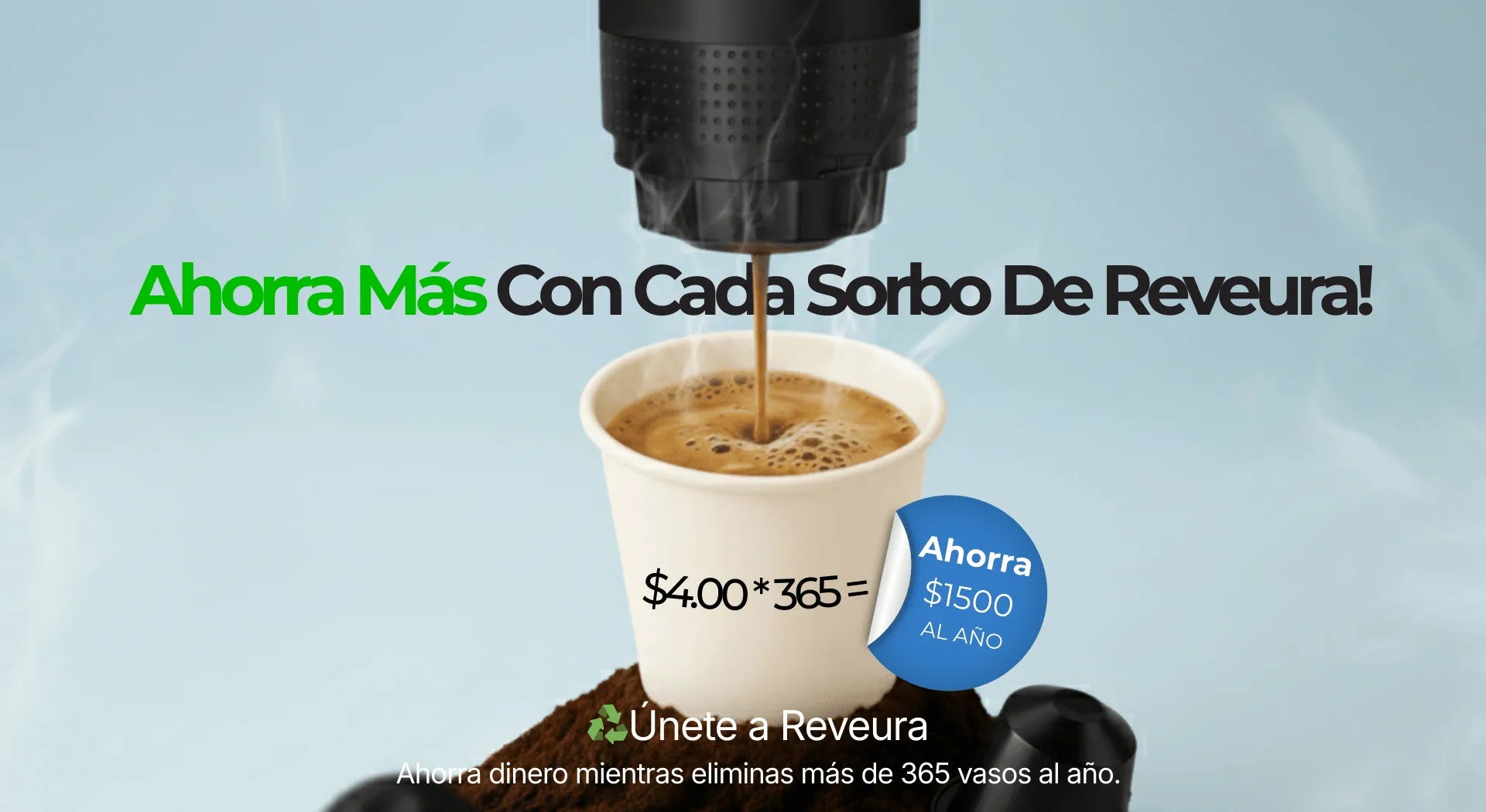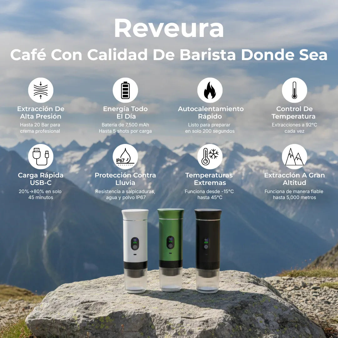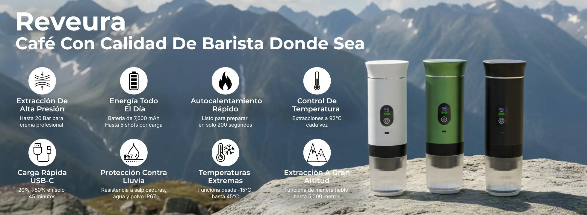 Desde tu oficina hasta la cumbre de una montaña, Reveura es perfecto para cualquier ocasión. Disfruta tu café sin importar dónde te lleve el día.