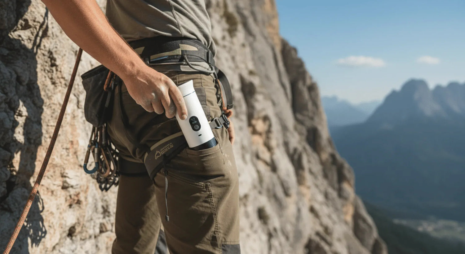 Pesa aproximadamente 600 gramos (similar a una botella de agua) y sus dimensiones compactas caben en cualquier mochila, maleta de mano o portavasos de auto.