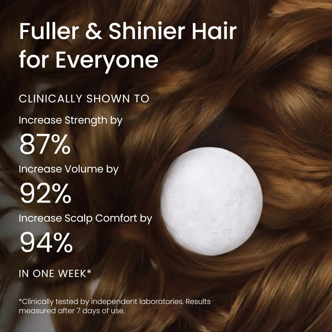 Visible volume and thicker strands — without harsh sulfates, bulky bottles or more hair in the drain ever again!